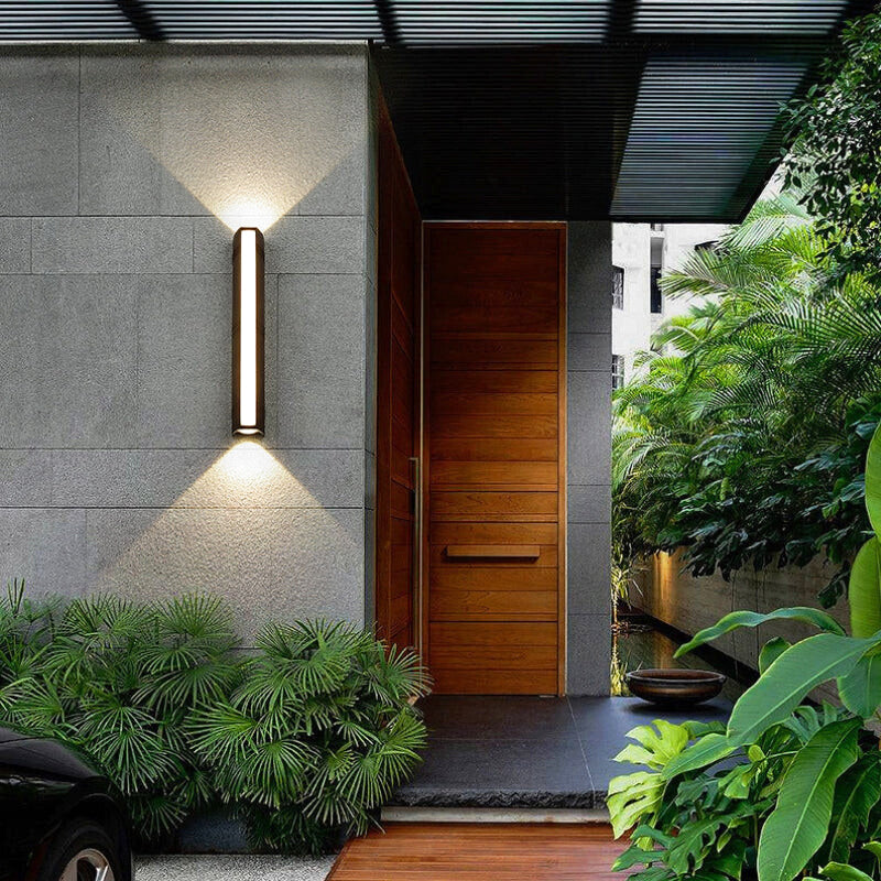 Cette applique murale d'extérieur se distingue par son design compact et minimaliste. Avec sa hauteur de 25 cm, elle habille discrètement les façades modernes, les piliers d'entrée ou les murs de terrasse sans encombrer l'espace.